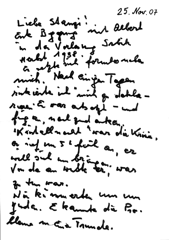 „Kristallnacht“ war die Krise, er rief um 5 h früh an, er will sich umbringen. Von da an wußte er, was zu tun war.