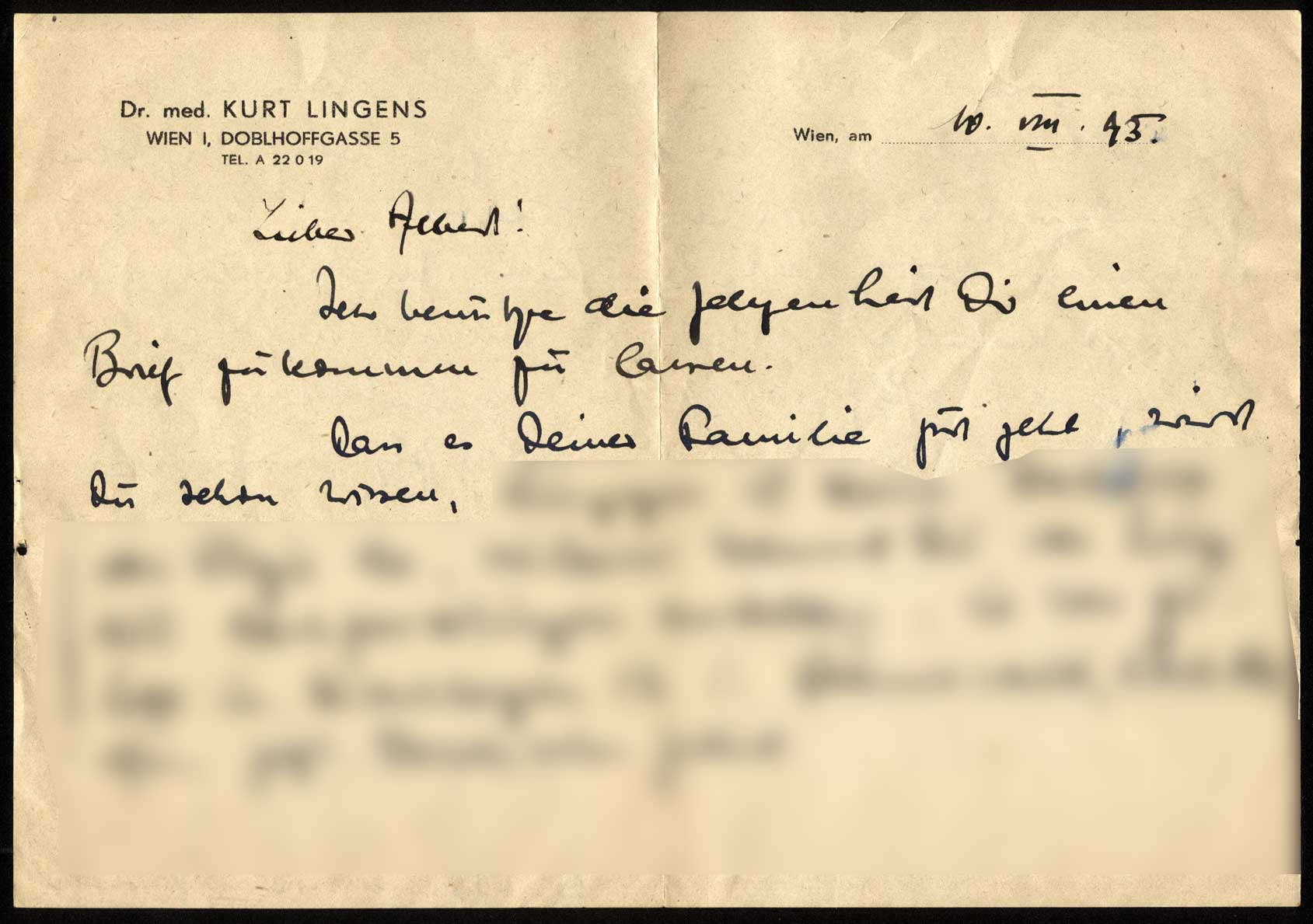 Brief von Dr. Kurt Lingens, 10. 8. 1945
